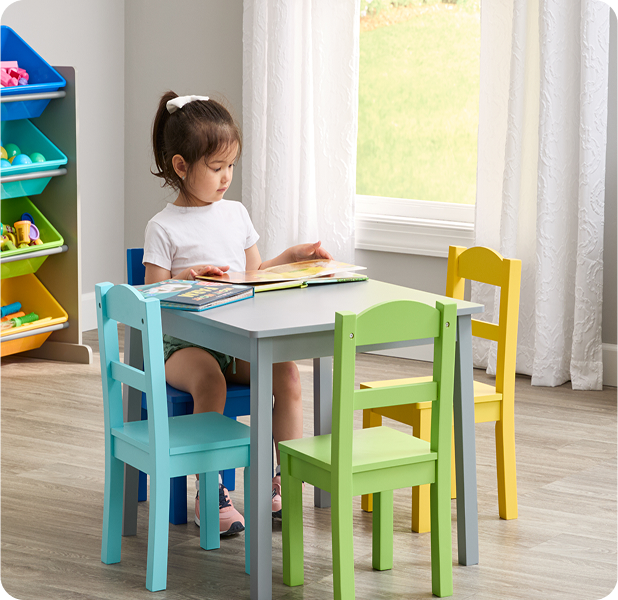“Got this table and chairs set for our granddaughter and she loves it. She plays on it and eats on it, pushes the chairs and the table across the floor, and puts her toys and books on it. It suits her well right now and will serve her for years to come.”